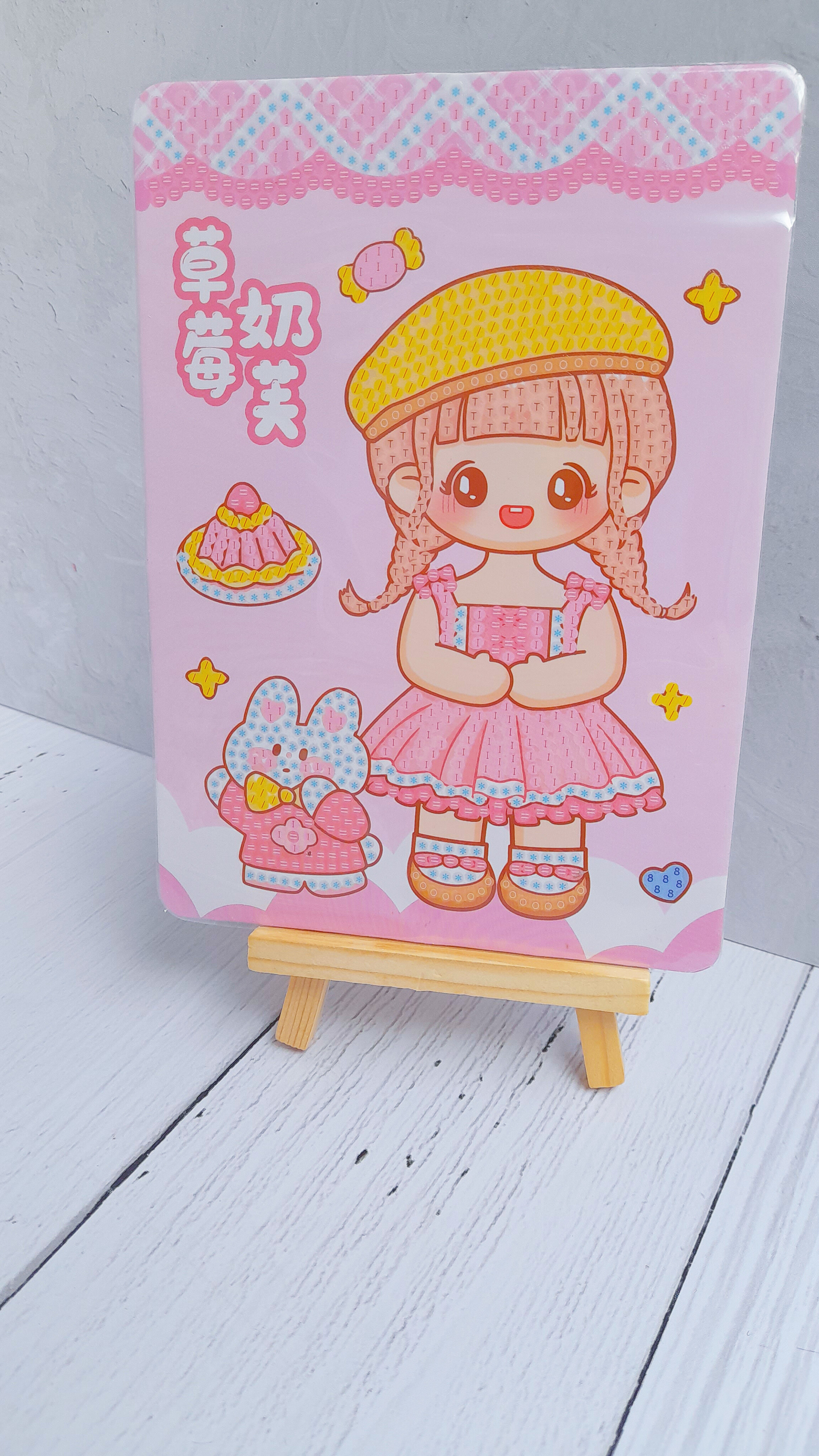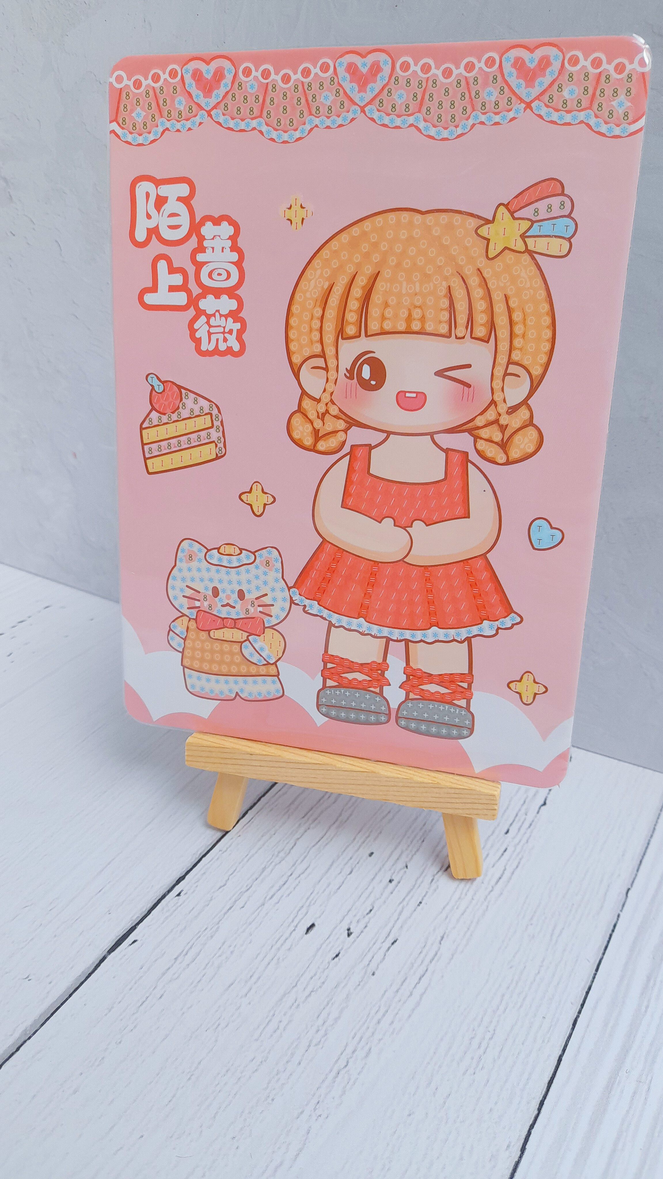 نقاشی الماسی طرح دخترکیوت بوم دارچوبی