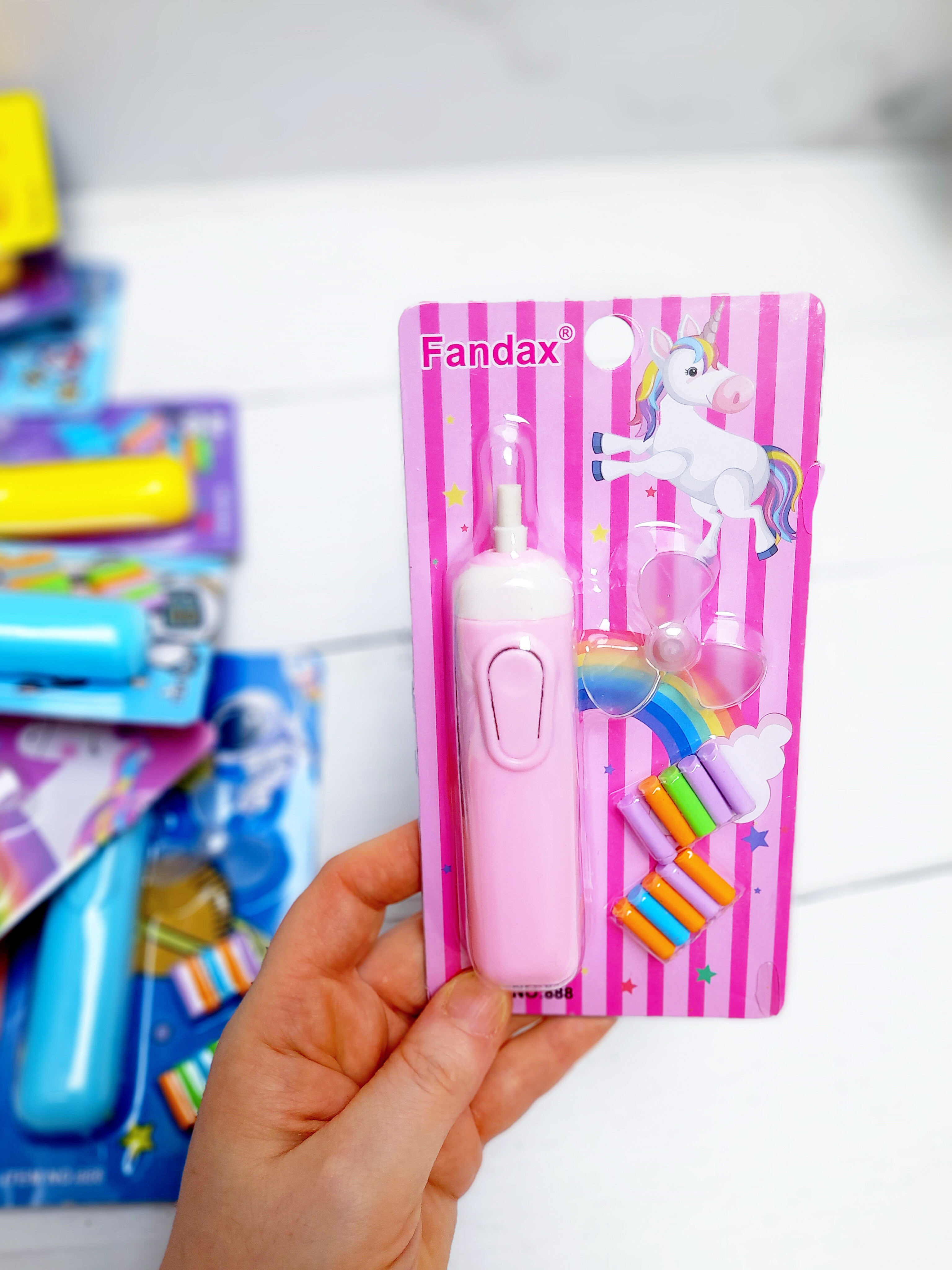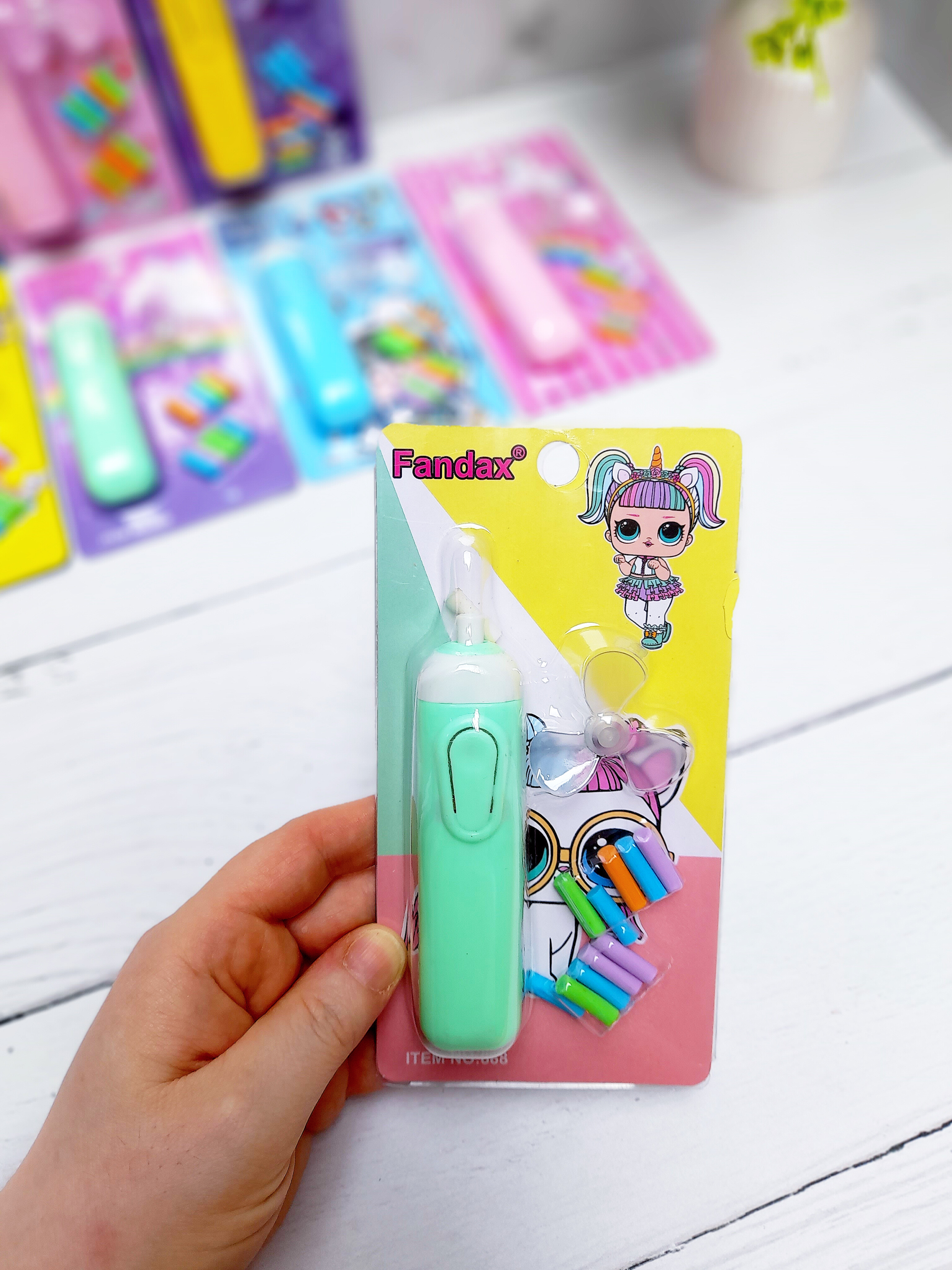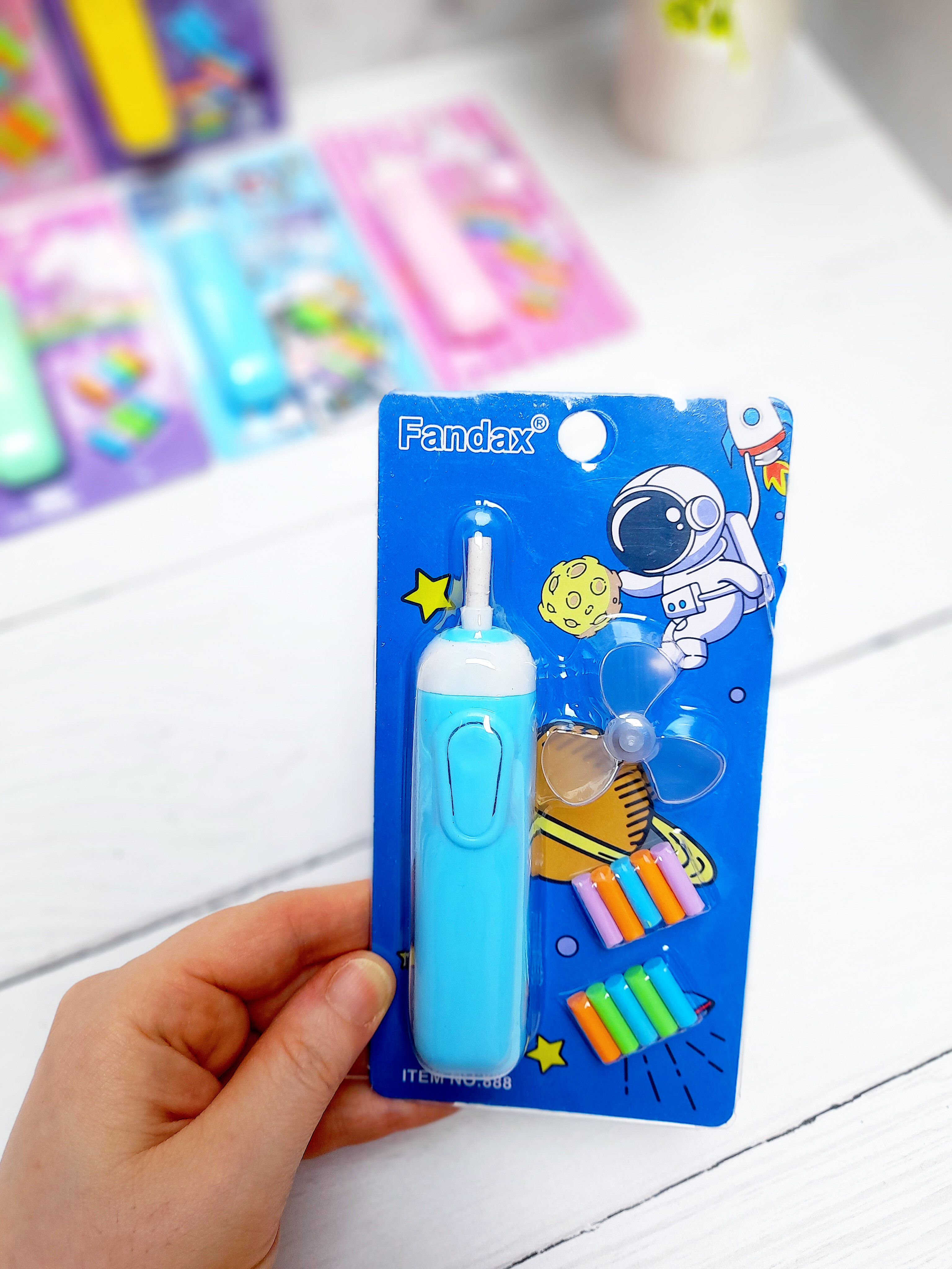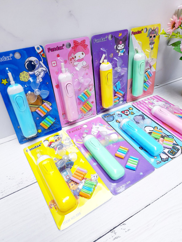 پاکن برقی هامون در طرحهای پسرونه و دخترونه هست و داخلشون ۱۰ عدد پاک کن کوچیک هست به همراه یه پره کوچیک برای بادکردن داره. با دو تاباتری نیم قلم هم کارمیکنه